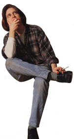 CP: What are you doing for IBM? JL: Bonehead interface design. In other words, accessible intuitive interfaces. Just like your doorknob is an interface you use to open a door, but you don’t have to know how the springs on the inside of the knob move when you turn it, my interfaces are simple. IBM is letting me go wild creatively to design video symbols that signify different functions of an interactive television interface. CP: You’re also teaching at NYU. What kind of course is it? JL: It’s an electronic publishing course that helps students build their digital portfolio, design interfaces, copyright their material and create a disk-based interactive project. CP: Rumor has it you have a club for your multimedia friends. JL: every other month, I hold meetings in my loft where our little community of cyberpunks get together and socialize while showing their work. I jokingly call these meetings CyberSlacker meetings. CP: Okay, so the world wants to know. What does this cyberslacker eat for breakfast? JL: Bagels and cream cheese. (Editor’s Note: Jaime is very much into listening to music. In fact, she listens at such high volumes that she has attached a flashing red light to her phone (a device usually reserved for the hearing impaired) because she can’t hear the ring over her stereo.)
